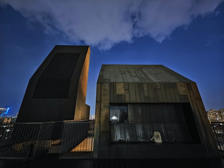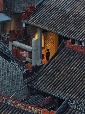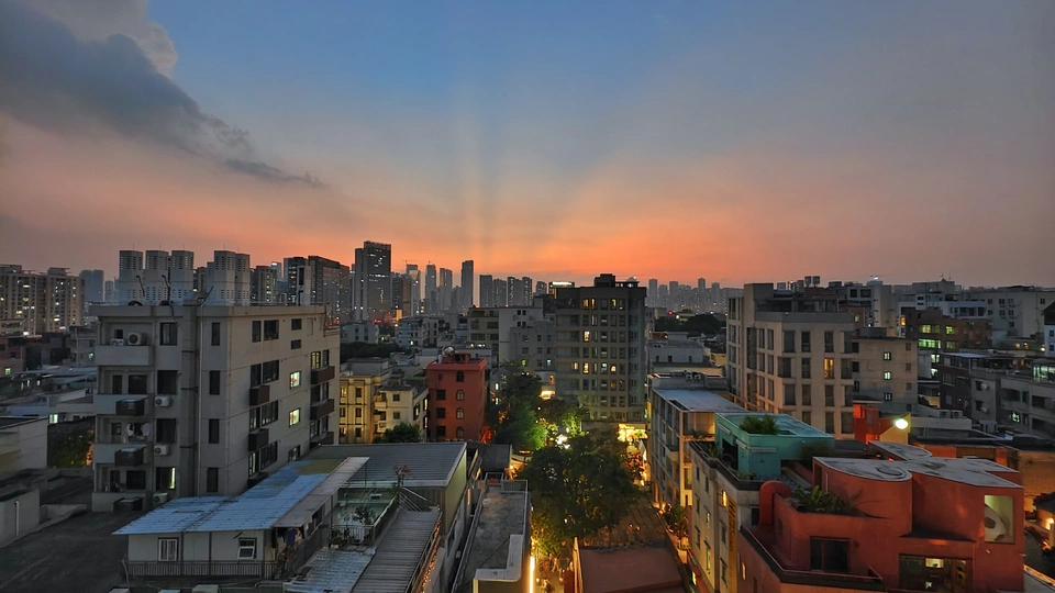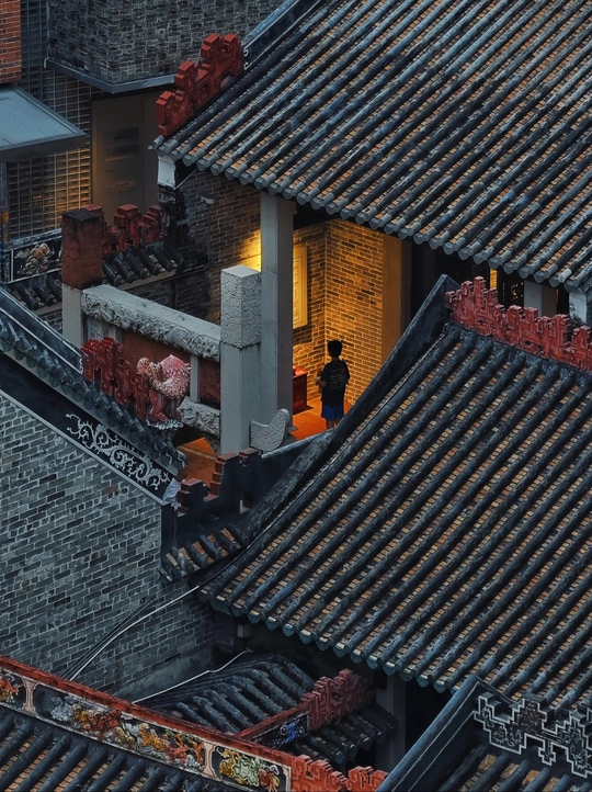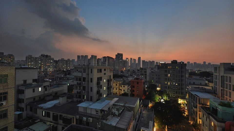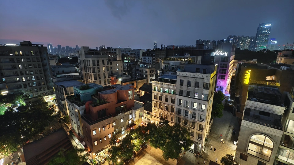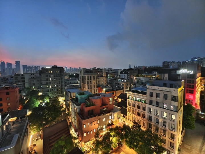 高楼之上,上帝视角,蓝调时刻的静谧光影,解锁城市变迁中南头古城传统与现代的共生密码。