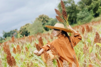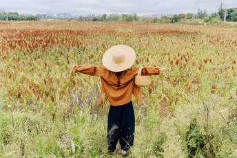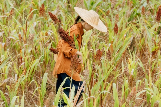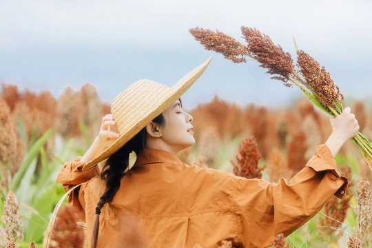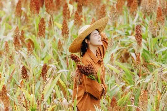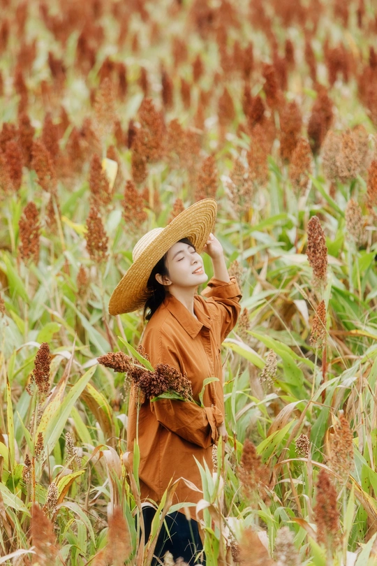 等穗头从青涩变成沉甸甸的绛红。 唢呐声响,万谷丰登。 /秋日写真分享 微博:倩小鱼zizi (我对高粱的印象,自然是没有北方人多的。可能是来自莫言的小说、来自电视剧《九儿》、也有可能是古镇上卖的高粱扫把、还有小时候吃过一两次的高粱粑粑。但高粱就是给我很强的中国血脉,是丰盛而又喜悦的。)