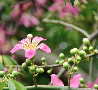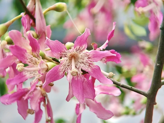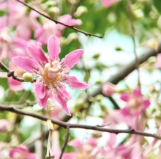 美丽异木棉,如诗如画般矗立,粉黛花瓣轻裹枝头,似少女羞涩的笑靥。春风拂过,她轻舞飞扬,绽放出绚烂的光彩。绿叶衬托,更显花朵娇艳,宛如一幅动人的画卷,让人心生欢喜,久久不愿离去。