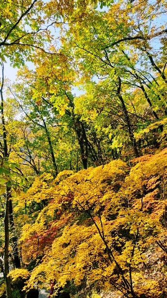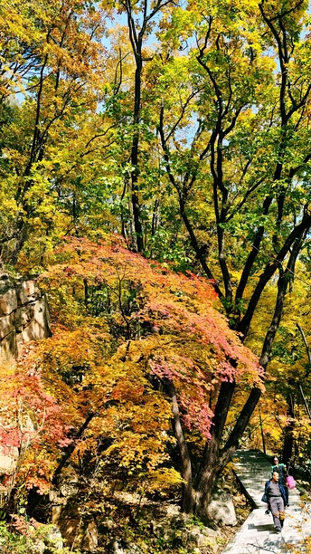 本溪枫林谷的秋色如诗如画,令人陶醉。 秋季的枫林谷,是枫叶的王国 。近20种枫树沿层峦叠嶂的山谷铺展,从常见的三角枫到罕见的十三角枫,各具特色。秋霜之后,枫叶由绿转黄,由黄渐橙,由橙变红,由红而紫,五彩斑斓 。从山麓到山脊,红色如潮水般层层叠叠地向上蔓延,与十月湛蓝的天空辉映,构成一幅绝美的画卷 。阳光穿过枝叶的缝隙,筛下斑驳陆离的光影,落在铺满落叶的小径上,每一步踩上去,都发出“沙沙”的轻响,仿佛是秋天在耳边低语 。 登上红枫顶等观景台远眺,可见红叶与蓝天交织,偶尔有飞鸟掠过,为静美的画面添上一笔灵动的生机 。而在溪边,红枫倒映在清澈的溪水中,与潺潺流水相互映衬,形成如诗如画的美景 。 @米拍 @米拍社长 @米拍小助手 @米拍编少