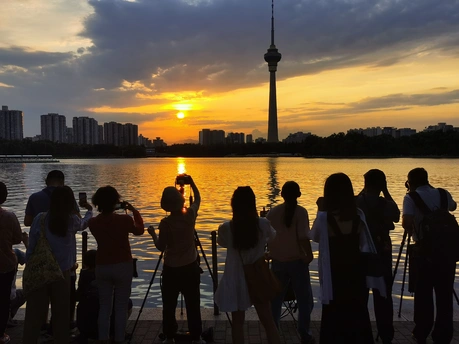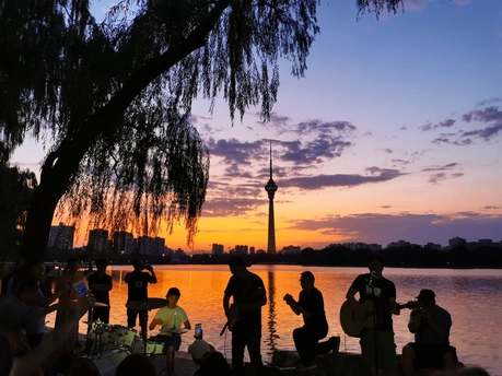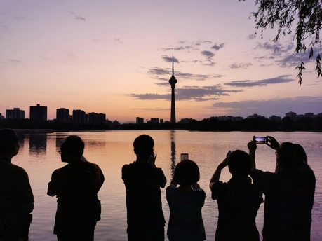 玉渊潭公园绚丽多彩的晚霞,湖面映晚霞,细柳望擎塔。捕捉光影流转的瞬间,留下独特的都市浪漫影像。