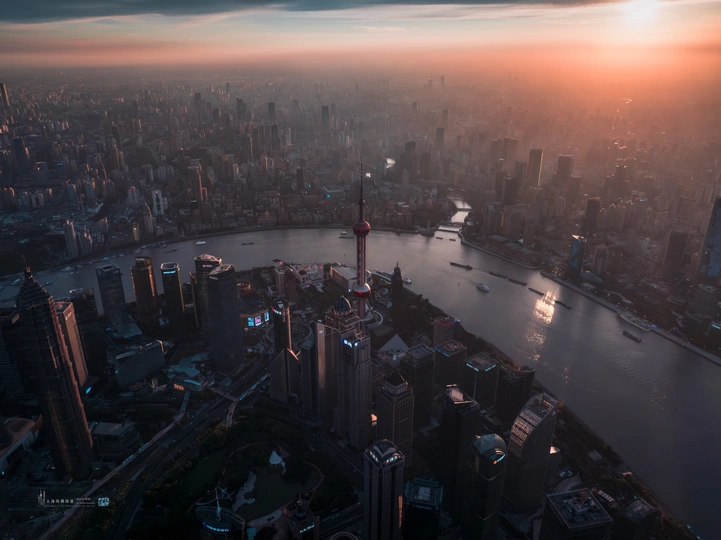 这是上海陆家嘴滨江的日落景致:黄浦江泛着落日碎金,东方明珠与摩天楼群被暖光裹住轮廓,远城楼宇在薄雾里层叠,冷灰建筑与暖金光影相映,城水交织的灵动气息随画面漫开。 拍摄设备:DJI MAVIC4PRO 参数:ISO420 f2.8 1/3200s