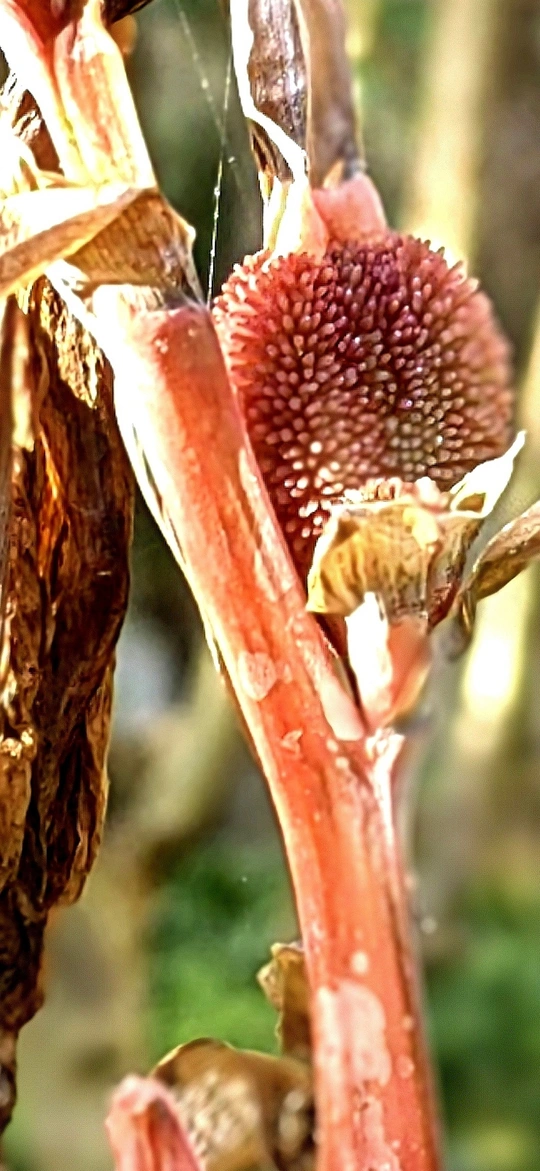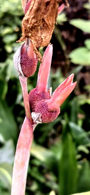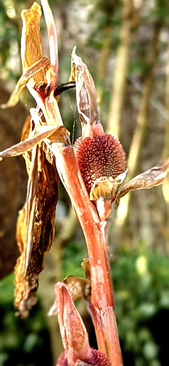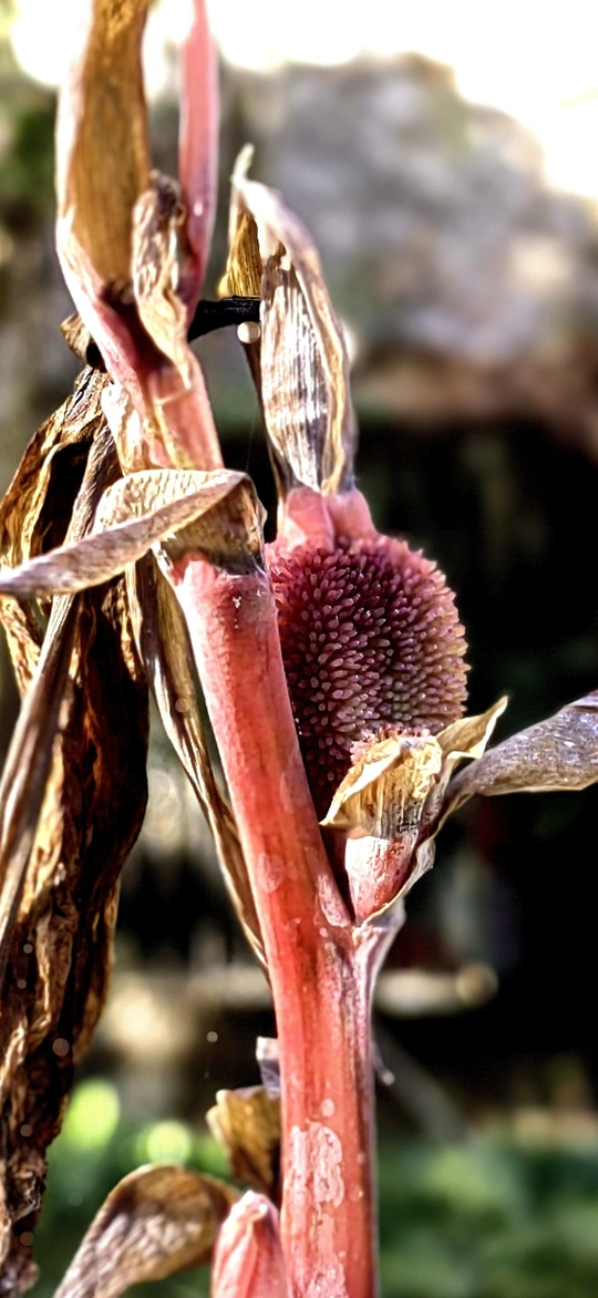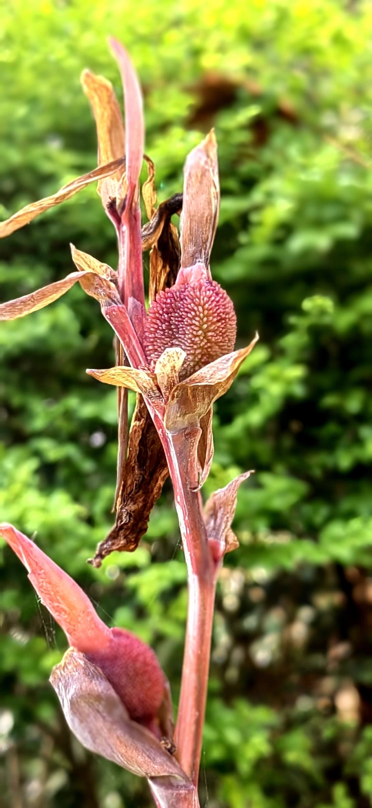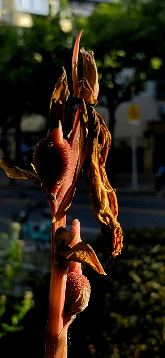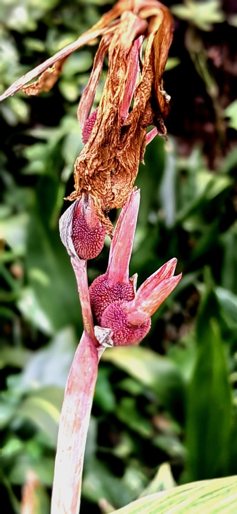 晚秋的美人蕉,酷似暮年的美人,年衰不失风韵。其身,枝干挺拔;其叶,线条浪漫;其果,面目隽秀。细观之,仍令人惊叹不已。