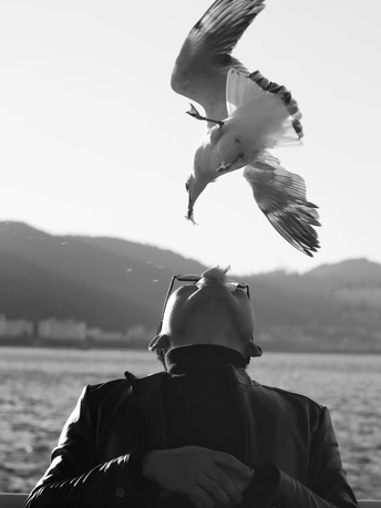 山海当背景板,风在耳边喊“看这里”!仰头递出小零食的瞬间,海鸥“唰”地扎进光影里——这哪是投喂,明明是和云朵偷闲的快乐,被翅膀剪成了闪着光的碎片~