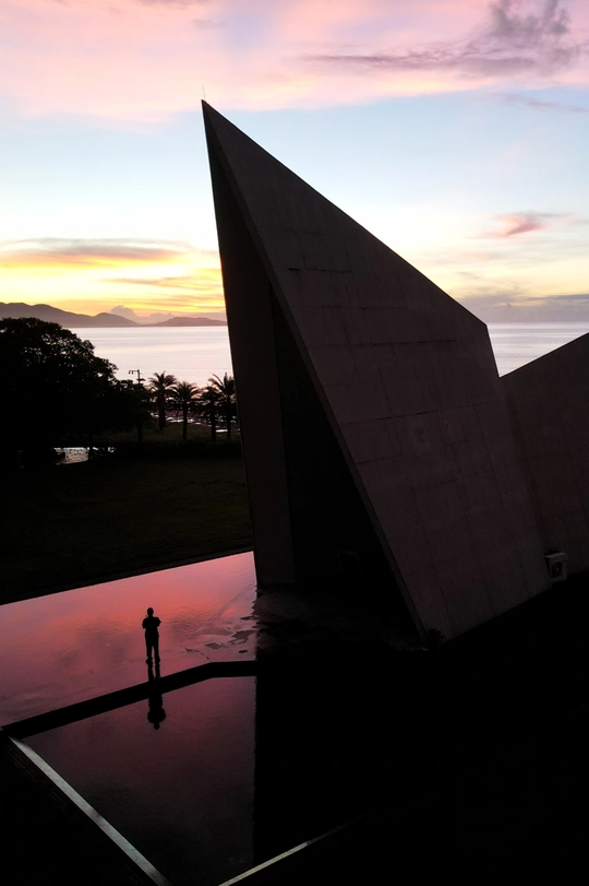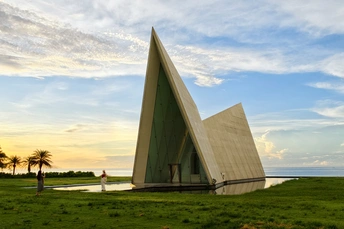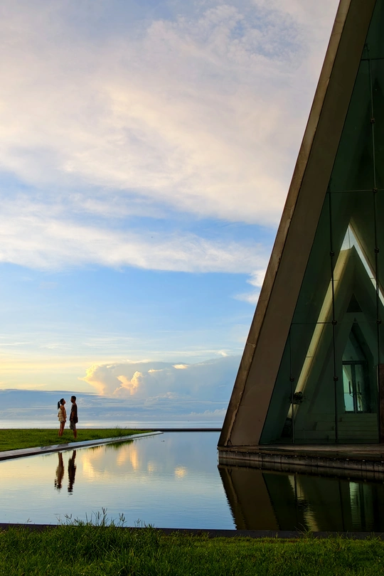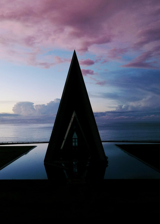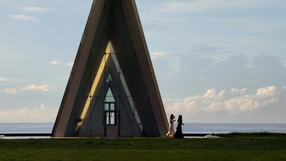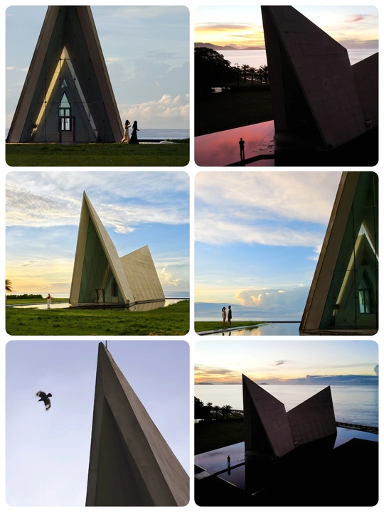 清晨的日月湾天卷云舒,晨日慢慢的爬上来,照亮教堂的一个小角落!