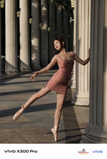 下午四点昨晚的阳光,开始变得柔和起来, 树枝的倒影散落在附近一条条高大的罗马柱上 女孩在光影之中翩翩起舞。