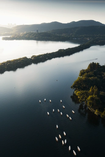 西湖的水是大地的眼眸,将远山、古刹与扁舟都映成诗行。晨光漫过苏堤的树影,几只画舫划破湖面的静谧,像是从宋人的词卷里悠悠驶出。那座塔在山巅伫立了千年,看遍了潮起潮落,却始终守着这一汪温柔,等每一个过客来此停泊,把心事托付给湖光山色。
