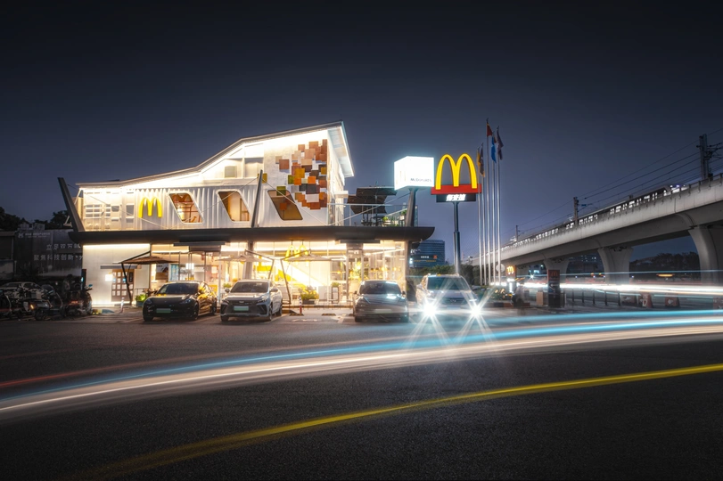 当集装箱建筑的先锋设计遇上麦当劳的金拱门,这座餐厅在夜色中成为城市的潮流灯塔。错落的几何结构在灯光下勾勒出艺术感,车流光影与暖黄餐灯交织,既是深夜食客的能量补给站,更是都市潮人的打卡秘境。在这里,汉堡的香气与建筑的创意碰撞,每一口美味都是对夜晚的浪漫注解,让快餐体验跃升为一场兼具美学与烟火气的城市微旅行。