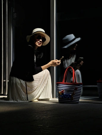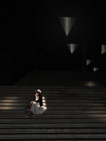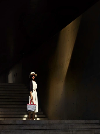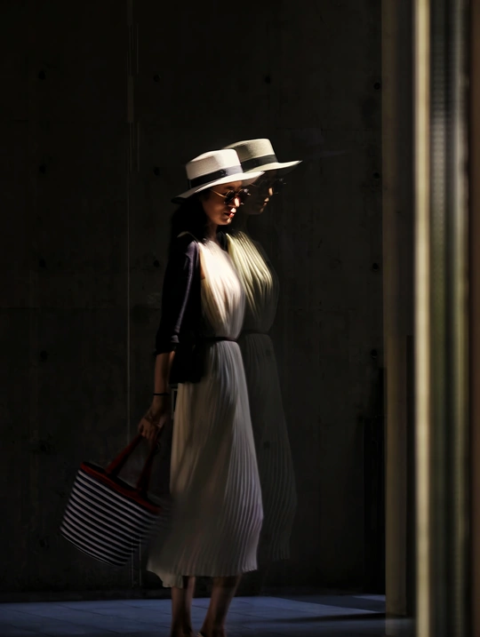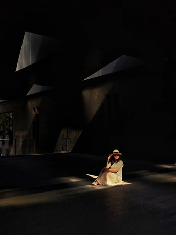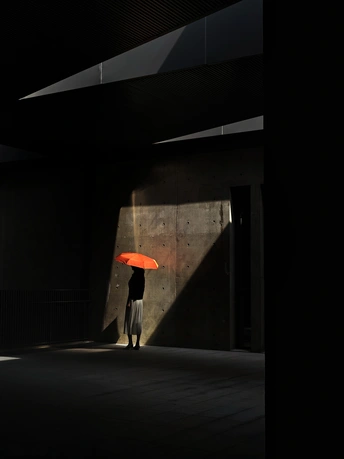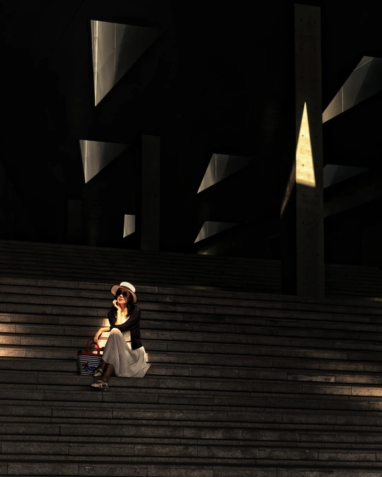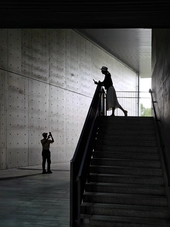 在混凝土的冷峻肌理间,光如灵动的舞者,上演着一场场关于建筑与人文的诗意对话: 那抹热烈的橙伞,是暗调空间里的视觉诗行;裙摆与帽檐的剪影,在光影梯级上勾勒出优雅的轮廓;镜面的倒影、台阶的明暗,每一处都藏着建筑与时光的共鸣。 这里是光的剧场,建筑是沉默的舞台,而每一个驻足的人,都是这场光影盛宴里的主角,在明暗交错中,书写着属于空间与灵魂的故事~~