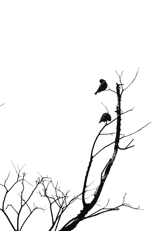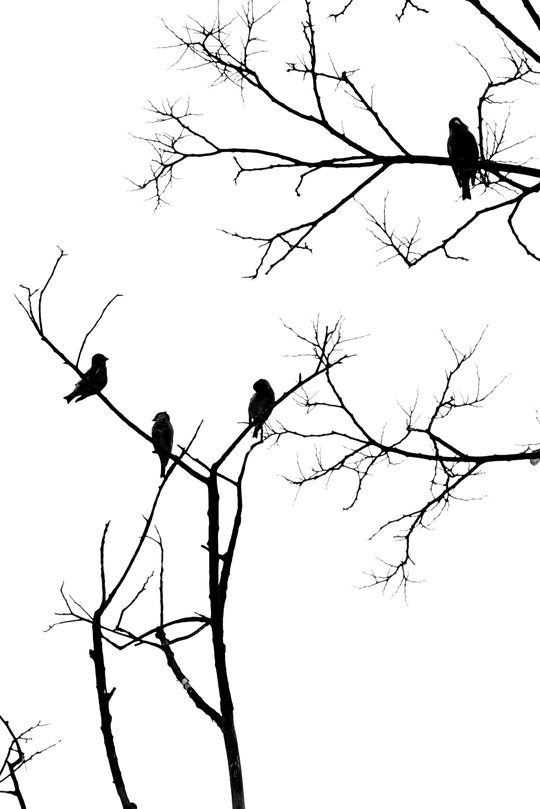 是天地铺了张素纸,枯枝蘸着墨画瘦骨 一只雀是句读,几只雀是短章 最后那对,把留白坐成了无声的对谈