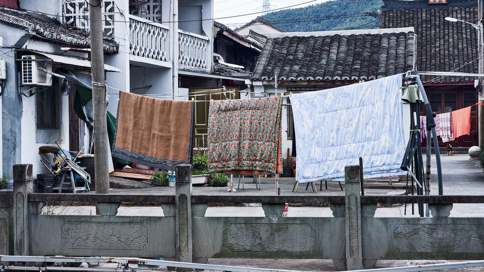 在水乡的风里, 被子晒着阳光的温度, 衣服飘着生活的气息。 每一道褶皱里, 都藏着日子的故事; 每一次飘动, 都是生活的呼吸。 这里没有惊天动地, 只有平凡里的深情。
