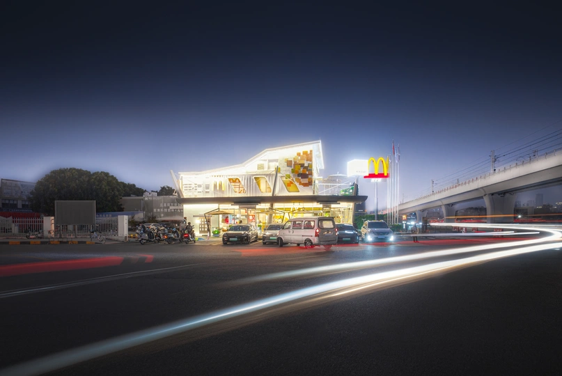 当集装箱建筑的先锋设计遇上麦当劳的金拱门,这座餐厅在夜色中成为城市的潮流灯塔。错落的几何结构在灯光下勾勒出艺术感,车流光影与暖黄餐灯交织,既是深夜食客的能量补给站,更是都市潮人的打卡秘境。在这里,汉堡的香气与建筑的创意碰撞,每一口美味都是对夜晚的浪漫注解,让快餐体验跃升为一场兼具美学与烟火气的城市微旅行。