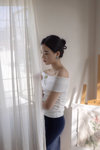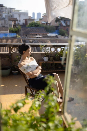 魔豆:杨媛 前期、后期:电脑侠客 器材:佳能 EOS R5、RF 35 F1.4L VCM 活动组织:大雄EVERY 作者随想:多年的摄影经验告诉我,像这种低密度室内人像摄影活动,场地一般都比较狭小,所以带35广角镜头是比较稳妥的选择,可以拍全身的同时顺便交代一下周围环境。要是带中长焦镜头的话,构图方面会受到比较大的限制。根据模特的外形气质,最适合的拍摄手法还是情绪片。当拍摄活动进行到一半的时候,明媚的阳光终于照进房间,瞬间打开了我的摄影灵感,在一顿狂拍之后活动顺利结束。整组片子的编排按照光线变化,呈现出先抑后扬、渐入佳境的特点。后期总体思路是采用低对比度胶片风格,让画面干净柔美,环境氛围感油然而生。最后感谢大雄的精心组织和杨媛小姐姐的精彩演绎!