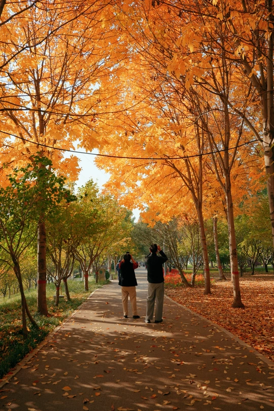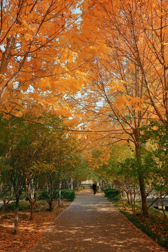 10月末石家庄逐步进入秋色巅峰期,石津灌渠公园靠近西边路道黄色和绿色交汇,景色甚是好看,阳光打下来简直美如画(可惜我缺个模特)。气温持续回升,绿色草坪恍惚回到夏天的感觉,有几对拍摄婚纱照的情侣增加了点缀。趁着11月初周末抓紧来赏景吧