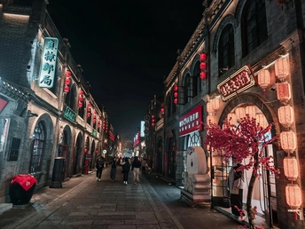 青石板路被岁月磨得温润,两侧青砖灰瓦的明清老宅静静立着,飞檐翘角划出天空的轮廓。 街旁槐树筛下细碎光影,落在“老字号”的木质匾额上。有茶香从半掩的门扉飘出,混着刚出炉烧饼的焦香。 偶有清脆铃响——是骑单车的少年穿过巷子,身影消失在拱券门洞深处。二楼花格木窗推开,晾出衣裳轻轻晃动。 在这里,六百年时光走得很慢,慢到足够留住一座古城最原本的呼吸。