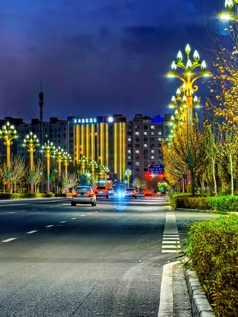 华灯渐次亮,夜色漫过街巷长
