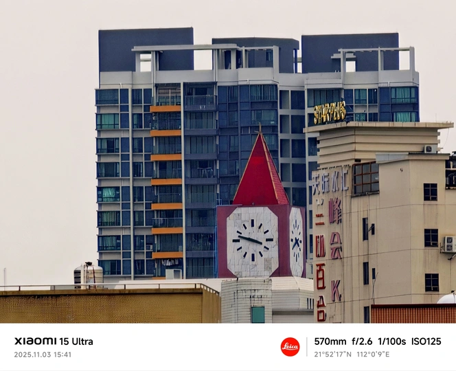 钟位于楼顶最高处,今天阴天光线比较差!所以整体偏暗