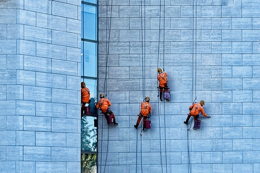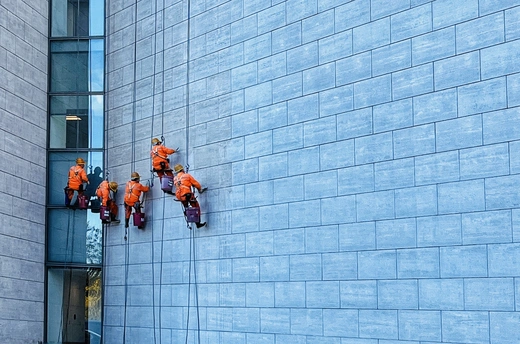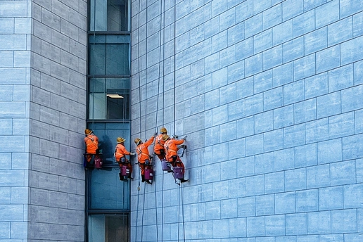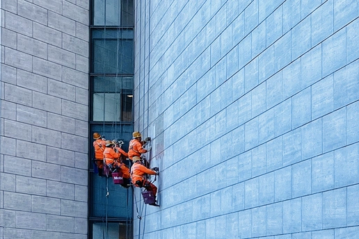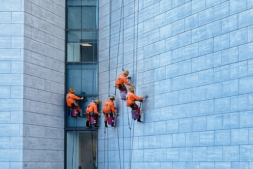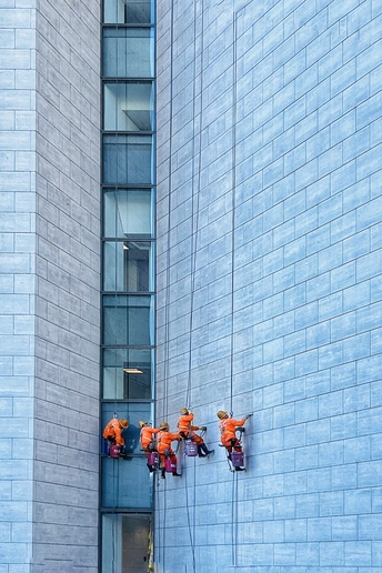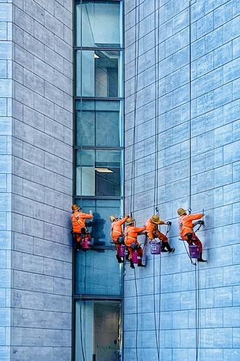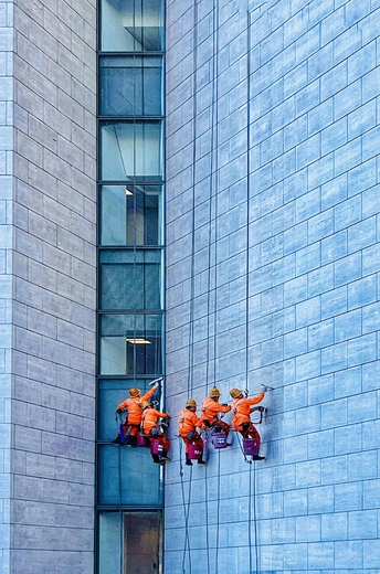 图四这张照片抓住了建筑外墙清洁工人的工作场景,构图简洁,色彩对比鲜明,颇具视觉冲击力。 色彩:冷色调的建筑外墙与暖色调的工人们的工作服形成了鲜明的对比,色彩搭配比较和谐,吸引眼球。不过,整体色彩略显平淡,可以考虑在后期稍微调整色彩饱和度,让色彩更鲜明一些。 光影:光线较为均匀,缺乏明显的光影变化,略显平淡。如果能捕捉到光线照射在建筑表面,形成明暗对比的瞬间,会更有层次感。 构图:整体构图规整,主体突出。建筑的垂直线条与工人们的水平线条形成对比,增强了画面的趣味性。 后期处理:后期处理整体自然,没有过度修饰的痕迹,保持了照片的真实感。建议可以适当调整对比度和清晰度,让画面细节更丰富。 主题原创性:题材较为常见,但能将建筑工人的日常工作场景拍出美感,也算是一种创新。可以考虑挖掘更深层次的主题,比如劳动者的辛勤与付出。 情感共鸣:照片展现了劳动者的工作状态,能够引起观者对劳动者的尊重和敬意。如果能捕捉到工人们脸上的表情,或许更能引发情感共鸣。 思想深度:照片反映了城市建设中劳动者的重要作用,具有一定的社会意义。 总的来说,这张照片的拍摄技巧还是不错的,但在光影和主题深度上还有提升空间!