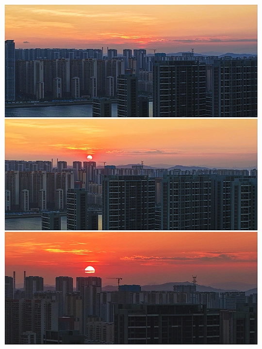 夕阳把城市的轮廓染上温柔的金边,天空从橘色渐变成深红,时间在楼宇间缓缓流淌,一天的喧嚣渐渐褪去,只留下这片刻的宁静与绚烂。