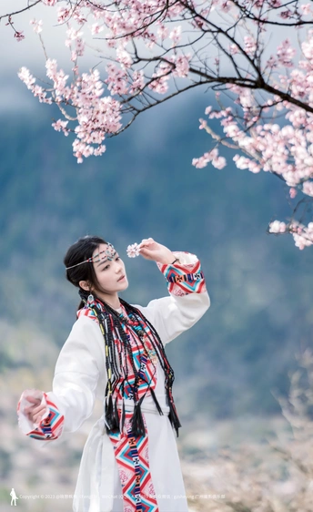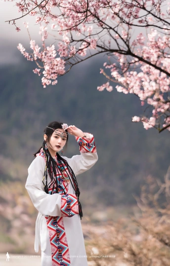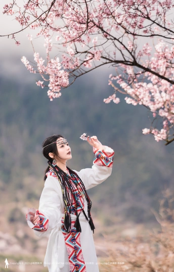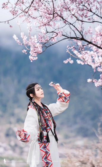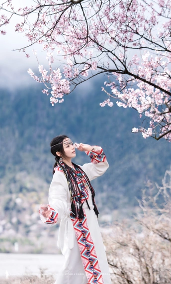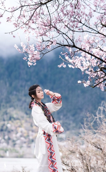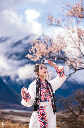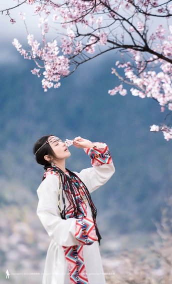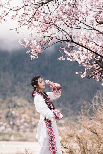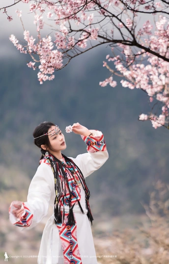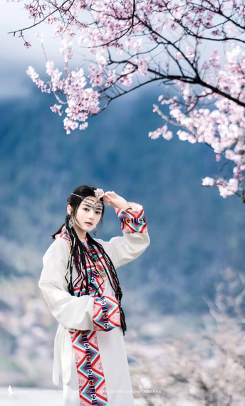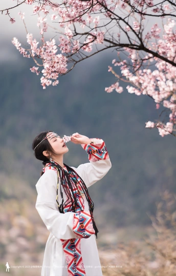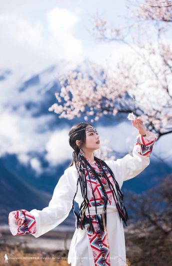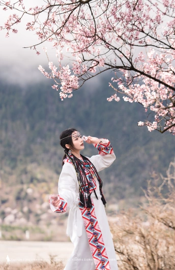 西藏林芝波密桃花沟桃花人像摄影