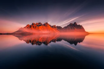 日出的那一刻,蝙蝠山点燃了