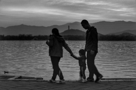 这张黑白照片捕捉了一个家庭在湖边漫步的温馨瞬间,背景的山峦增添了画面的层次感。整体来说,它有一定的优点,但还有提升空间。色彩:黑白影调简洁,但缺少色彩的对比和层次,略显单调。如果能利用后期调整,增强黑白对比,可能会更好。 光影:光线较为柔和,但缺乏戏剧性。可以尝试在日出或日落时分拍摄,捕捉更丰富的光影效果,增加画面的氛围感。 构图:构图基本合理,将家庭置于画面右侧,留出一定的留白,但略显平淡。可以尝试不同的拍摄角度,比如降低机位,或者利用前景元素来引导视线。 后期处理:后期处理中规中矩,但可以适当增加对比度和锐度,使画面更清晰。 主题原创性:主题较为常见,缺乏新意。可以尝试寻找更独特的视角和表达方式,例如捕捉家庭成员之间的互动瞬间,或者利用环境元素来烘托主题。尝试寻找更独特的视角和表达方式,例如捕捉家庭成员之间的互动瞬间,或者利用环境元素来烘托主题。 情感共鸣:照片传达了家庭的温馨和幸福,但情感表达不够强烈。可以尝试捕捉人物的表情和动作,或者利用光影来营造氛围,增强情感的感染力。 思想深度:照片缺乏深层次的思考。可以尝试通过照片来表达对家庭、生活或自然的感悟,或者引发观者对社会问题。