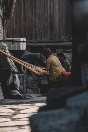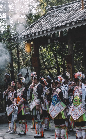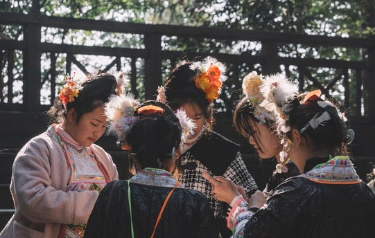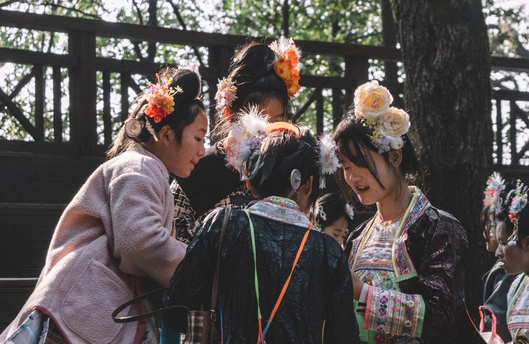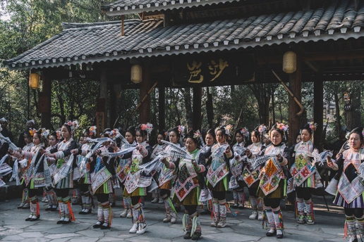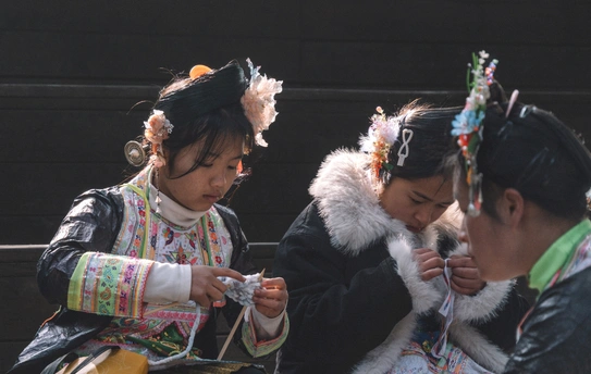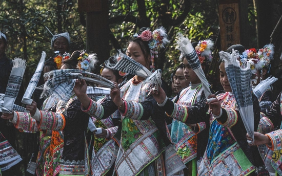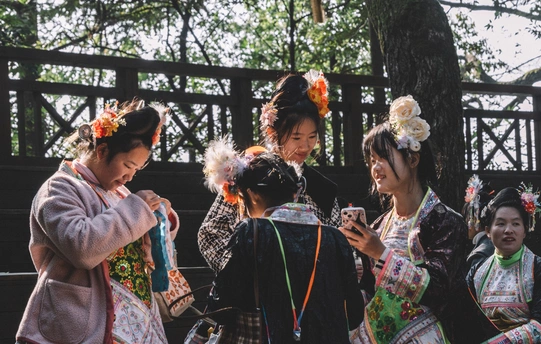 2025年1月5日,贵州省黔东南苗族侗族自治州从江县,岜沙苗寨的清晨,苗女们指尖生花。彩线在绣绷上穿梭,织就民族图腾;纺车轻转,捻出岁月悠长。当宾客临门,她们身着盛装,踏歌起舞,银饰叮当与欢声笑语交织。一针一线绣着传承,一歌一舞透着热忱,将苗寨的烟火气与待客情,尽数融入这片山水间。