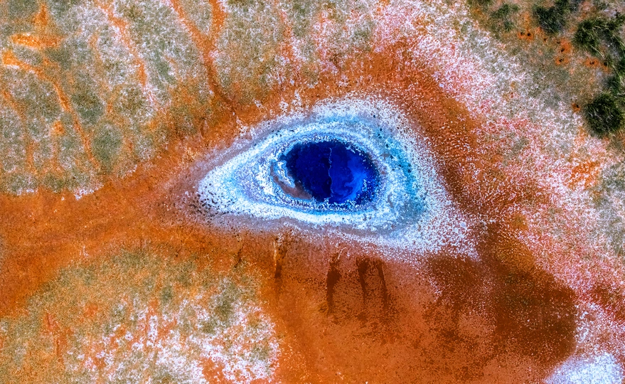 在空中俯瞰沙漠里的盐湖,发现一只巨大的蓝眼睛,仿佛在默默凝视着这个世界。。。
