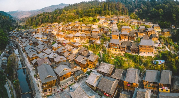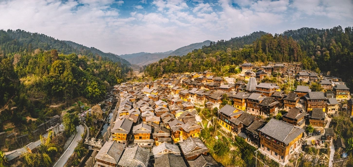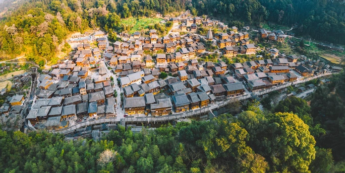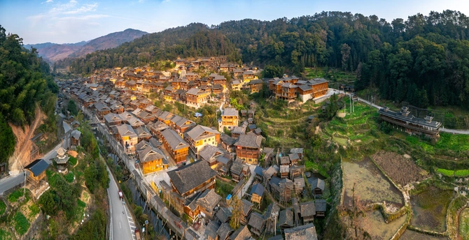 2025 年 1 月 4 日,贵州省黔东南苗族侗族自治州从江县占里侗寨浸在暖阳中。金色光芒漫过青瓦飞檐,鼓楼的榫卯木构泛着温润光泽,吊脚楼依山而建、层层叠叠,风雨桥横跨溪流如卧虹。青石板路映着光影,木楼纹理与暖阳相拥,整座村寨在冬日晴空下,尽展自然与匠心交融的绝美画卷,每一处都透着静谧动人的韵味。 占里村先后获评“中国景观村落”、“全国文明村镇”、“中国美丽休闲乡村”等称号,被誉为“中国人口文化第一村”