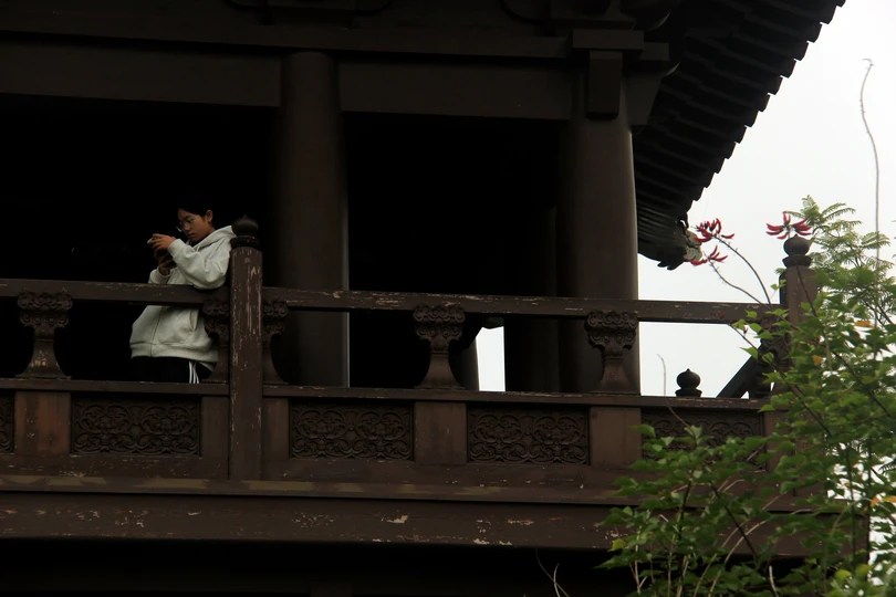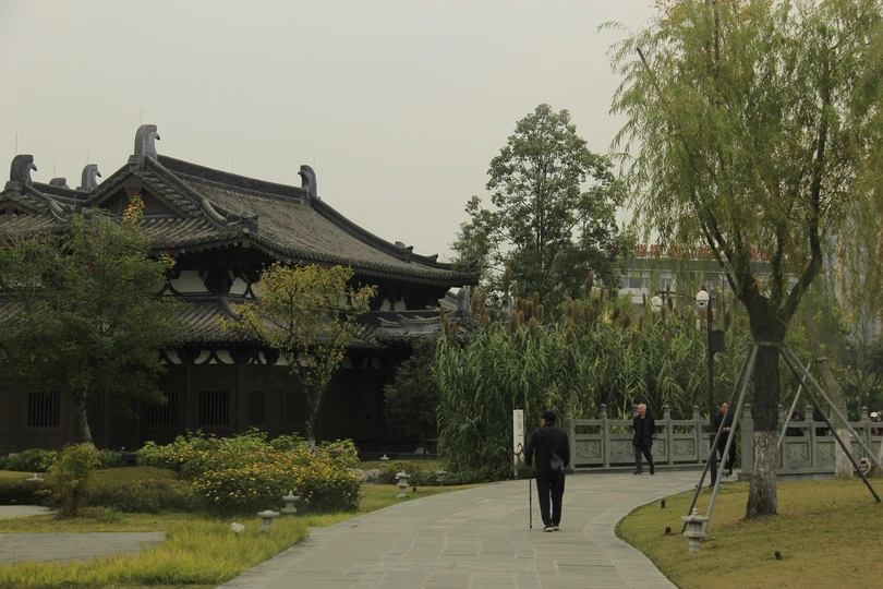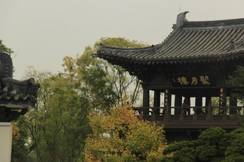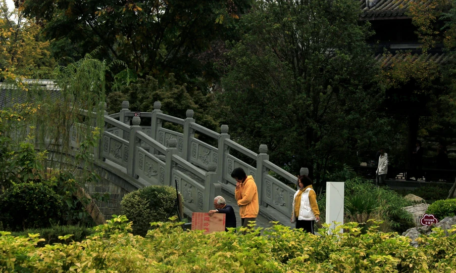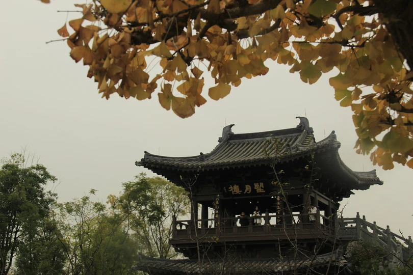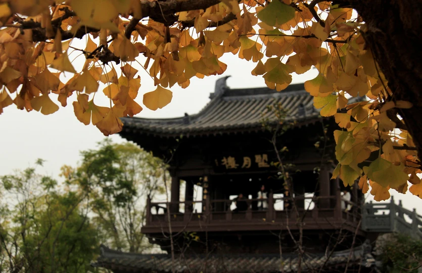 深秋的易园,银杏叶似金蝶蹁跹,在坠月楼前晕染出一地金黄。那扇形的叶片,或明黄如琥珀,或浅褐似古铜,于枝头轻晃,将古雅的坠月楼温柔环抱。 风过处,叶影婆娑,与飞檐翘角的楼阁相映成趣。仿佛时光在此凝驻,深秋的诗意,便在银杏的簌簌声与楼阁的古韵里,酿成一帧帧醉人的画,诉说着易园深处的季节私语。