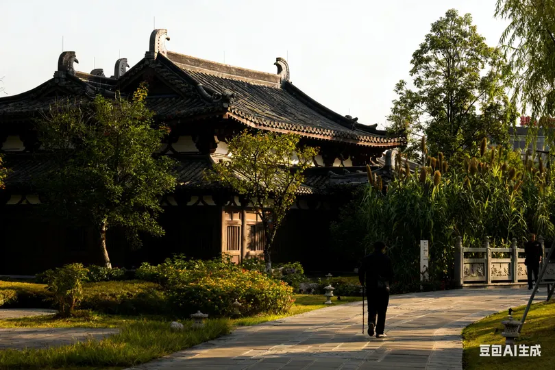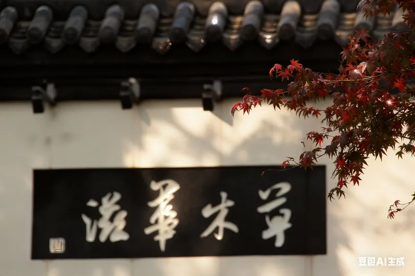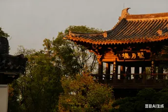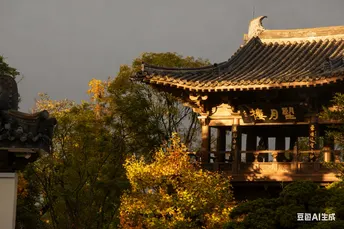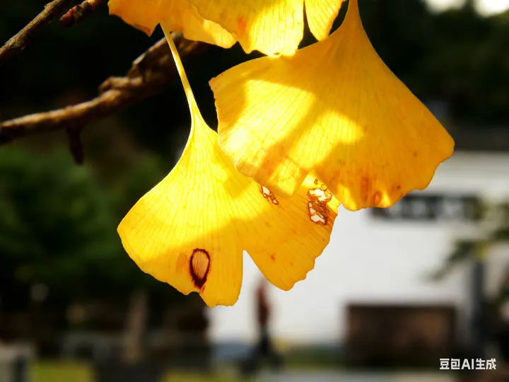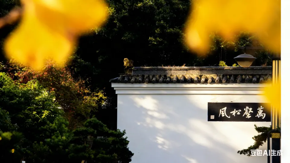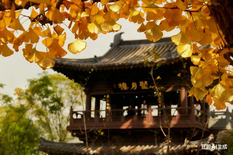 秋意悄然漫过白墙黛瓦,银杏叶似金箔般垂挂枝桠,风掠过屋檐时,将碎金般的光影揉进朱红的匾额里。青砖垛口间,枯黄的枝桠探着脑袋,远处的“望月楼”在薄雾里半掩半藏,石阶上飘落的银杏叶,似是时光遗落的诗笺,轻轻诉说着古园里的秋意温柔。