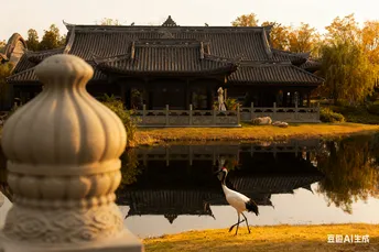 深秋的园子里,时光似被调成了暖金色的滤镜。 湖畔楼阁在夕阳里晕染成一幅古画,水鸟悠游,惊碎了满池的秋光;“西蜀大观” 的门拱下,橘猫蜷在石阶上酣睡,梦里或许也落满了红叶;“万景山房” 的门扉框住一地银杏,灰兔静卧,与石兽一同聆听叶瓣簌簌的私语;老墙的窗洞里,松鼠跃过,惊起银杏叶如金蝶纷飞;水畔亭台边,丹顶鹤闲步,在秋草与倒影间,把古园的韵致蹁跹成了仙意。 这秋,便在古建的飞檐、秋叶的斑斓与灵物的鲜活里,酿成了一盅醉人的诗,每一口,都浸着岁月与自然的温柔交响。