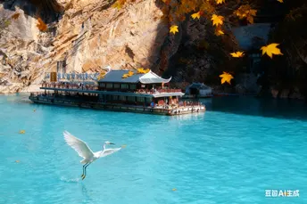 江水褪去了浊黄,在秋阳下漾成一泓琥珀色的清镜。一艘画舫泊在江畔,舷边的朱红窗棂映着崖壁的斑驳纹理,像谁遗落的信笺。 几只白鹭正掠过水面,翅尖沾起的涟漪,惊动了崖洞古寺檐角的铜铃。落叶打着旋儿坠入江波,每一片都是季节写给山水的情诗,在时光里漾开温柔的褶皱。
