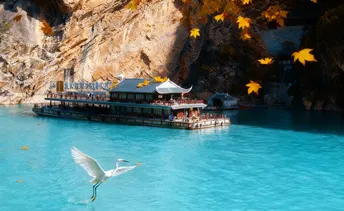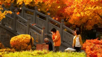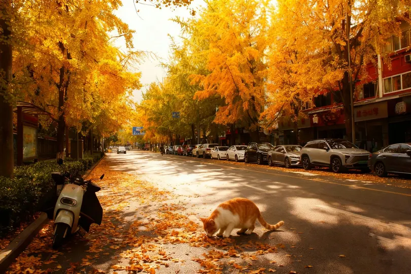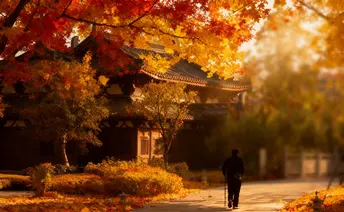 秋光漫过飞檐,将层叠的瓦当染上暖金,古楼在银杏与丹枫的簇拥中,成了时光里的画框。而另一处,望月楼的轮廓嵌在八角窗中,夕阳为檐角的风铃镀上柔光,红叶如诗,晕开了江南的秋意。