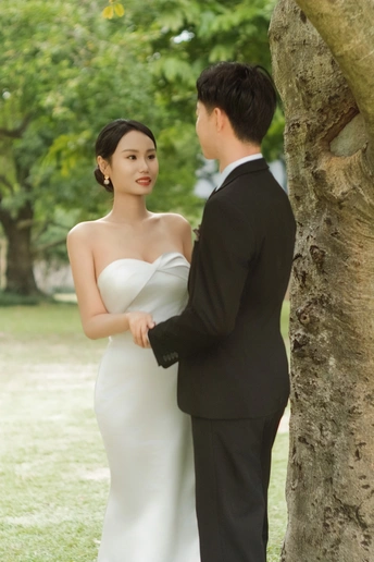 那年春天,她站在树影斑驳的草坪上,风吹起她的头纱,像一场未完成的梦。 他站在远处,一身黑衣,目光穿过树叶,落在她身上—— 那一刻,他忽然明白:原来爱不是轰轰烈烈的宣言,而是你站在这里,我就愿意停下脚步,等你走来。 他们没有选在海边,也没有去雪山顶。 只是在一个寻常的午后,穿上了白裙与西装,走进了这片安静的绿地。 没有喧闹的宾客,没有华丽的布景,只有风、草、树,和彼此。 她低头整理裙摆时,他轻轻扶住她的手; 他系领带时,她悄悄为他掸去肩上的尘; 她掀开头纱的一瞬,他笑了,像是终于等到某个久别重逢的人。 他们说:“我们不是最耀眼的那一对,但我们是最踏实的。” 于是镜头里,没有夸张的拥抱,没有刻意的笑颜, 只有眼神交汇时的静默,和指尖相触时的温度。 后来有人问:“你们拍婚纱照,为什么这么安静?” 他们说:“因为我们的爱,从来不需要大声宣告。” 如今,当照片被翻出来,阳光依旧洒在草地上, 而他们,已经把这场“春天的婚礼”, 过成了余生最长的日常。