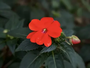 偶遇一朵‘红得理直气壮’的凤仙花,花瓣上的水珠是天然高光,连叶子的锯齿都透着傲娇,原来热烈的花,自带‘让人挪不开眼’的本事~