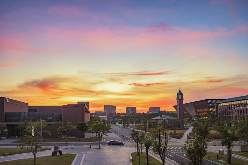 暮天泼彩,染就广厦万千 云锦流金,映照书声朗朗