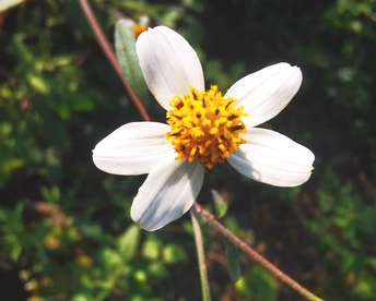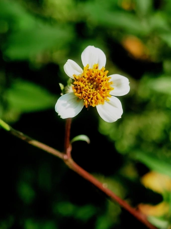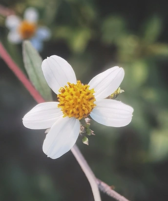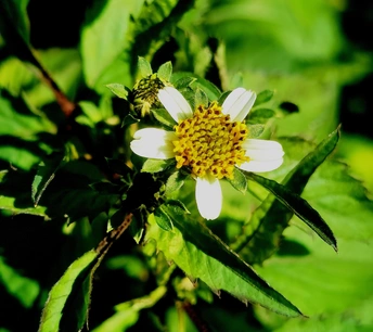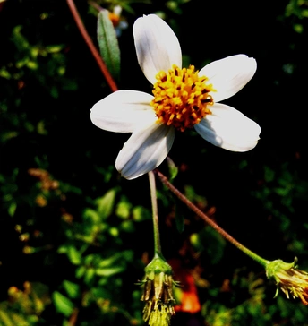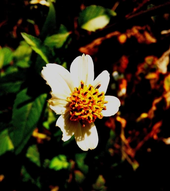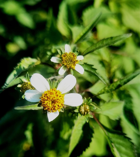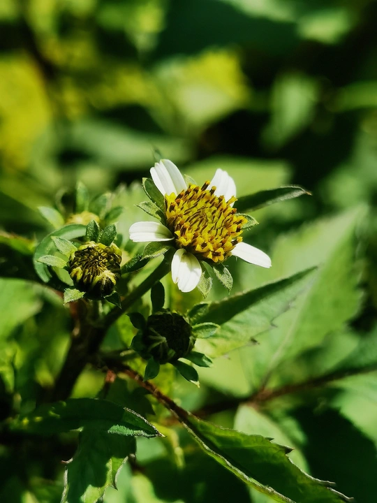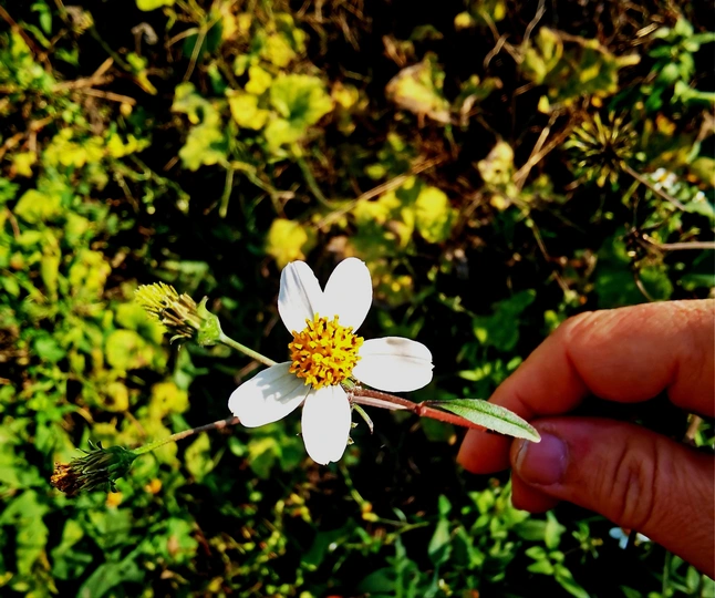 现在是菊科植物的天下,有幸在绍兴东安路旁的荒地上,看见白花鬼针草,不枉大冷天出来一遭。 白花鬼针草,菊科鬼针草属,花朵较大,颜色为白色,花瓣数较多,呈多边形,花蕊黄色。白花鬼针草是鬼针草的一个变种,因其花白,又称白花鬼针草。 冬天,有花开就应该称妙。