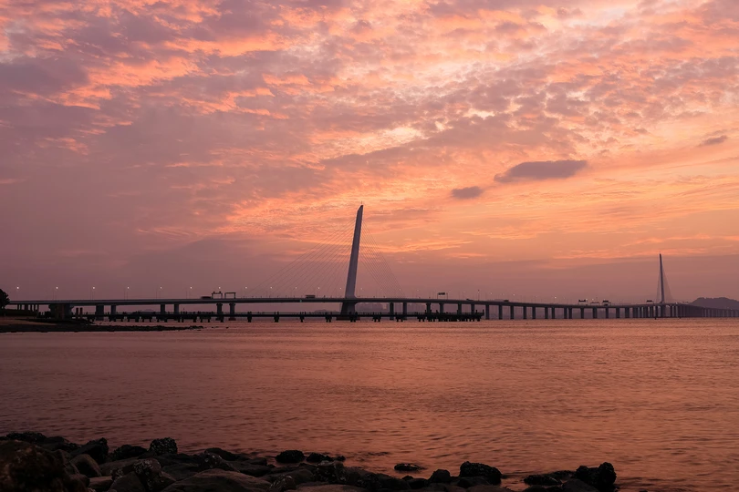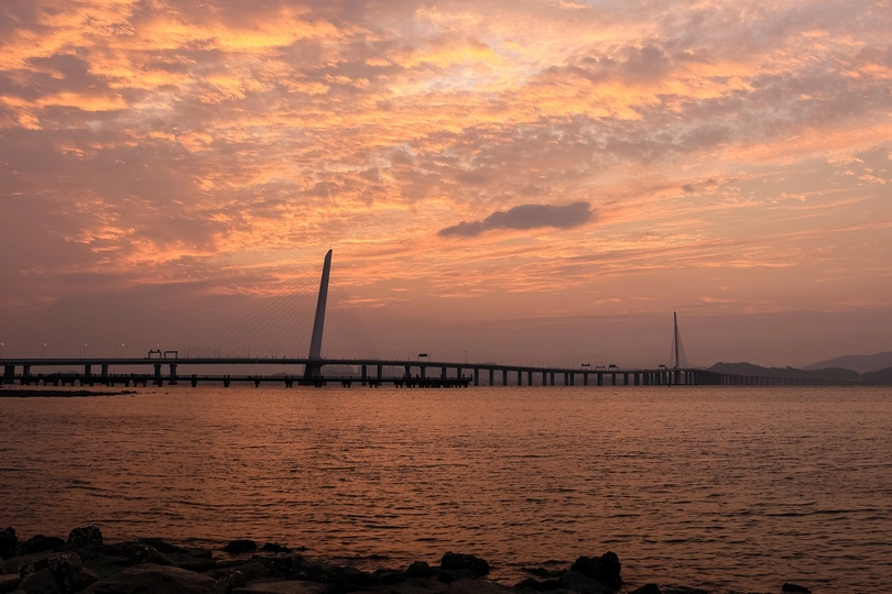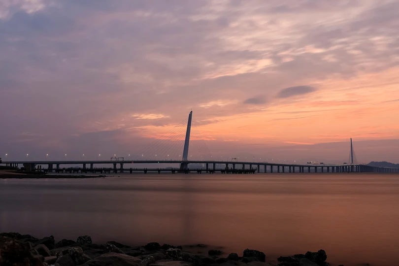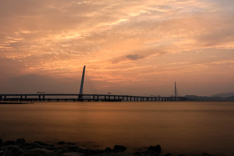 深湾大桥日出火烧云