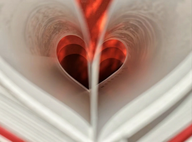 书页折叠成心的形状,是文字与情感的共鸣,每一页都藏着真挚的心意,如同一本写满深情的爱的札记。