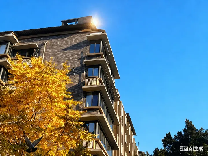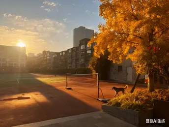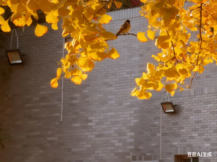四帧画面里,秋叶都浸成透亮的金黄,阳光斜斜织出暖绒绒的光影,将冗余枝蔓轻轻滤去,只留长椅、窗台、街角的主体静静立着。花猫蜷在椅边舔爪,小狗绕着灯柱嗅叶,这些城市里的小生灵,成了金黄秋景里最灵动的注脚,让每一处角落都藏着不慌不忙的秋意。