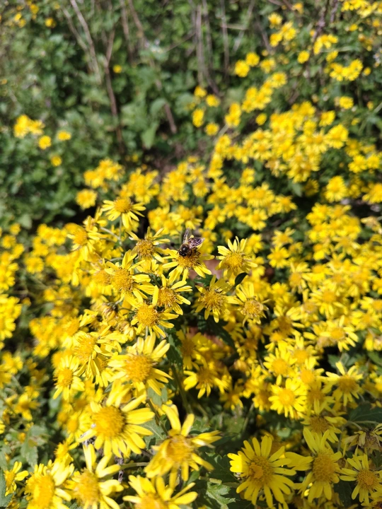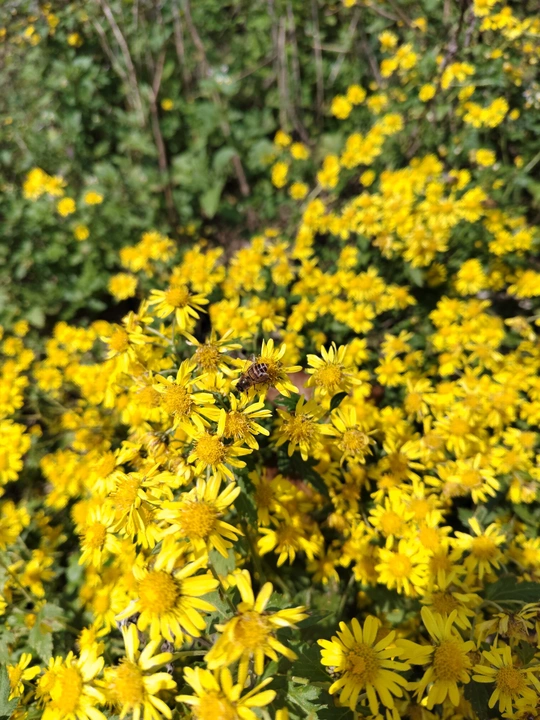 今天是周末,在郊野偶遇这片金黄花丛,恰好撞见这只小蜜蜂埋首采蜜——触角轻颤、绒毛沾着花粉,连翅膀的震动都裹着认真。镜头定格时忽然觉得:它忙碌的模样,就是春天最生动的注脚。