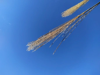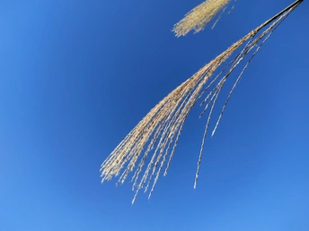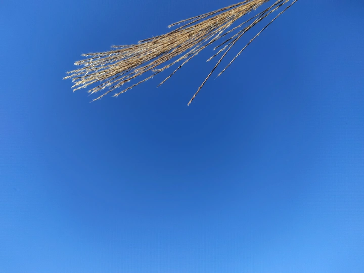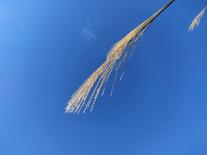 蓝底裹金芒,麦芒沾暖,是秋揉在帧里的软。
