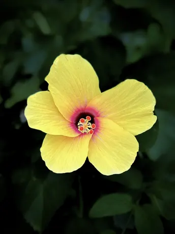 扶桑花开成了小太阳,明黄瓣叶裹着暖光舒展,脉络里淌着细碎明亮,风拂过便漾开浅浅暖意。花心藏着一抹紫纹,像暗戳戳的浪漫彩蛋,悄悄缀在热烈里,添了几分柔润细腻。不张扬却鲜活,静静盛放便攒满温柔底气,日子也跟着染上明媚清甜,岁岁常绽,岁岁安暖🌼