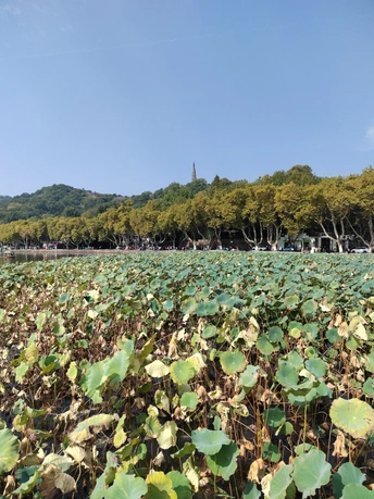 早上绕西湖散步,撞见满池荷香裹着水汽漫过来。镜头里的绿是浸了湖风的,连带着远山和云都软乎乎的。总觉得西湖的夏天藏在这些细碎里,不是挤在断桥的人潮,是偶然拐进的小径旁,荷叶晃着光,风裹着荷香撞进镜头里。没特意等光线,就是刚好站在这儿,刚好接住这帧属于西湖的松弛。