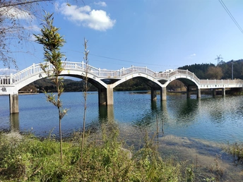 “镜头里的湄坨村,是被梵净山余脉轻轻捧着的村落,湄坨村的风,裹着茶香味,镜头里的桥连着凉亭,是村民歇脚的老地方,那片湖是‘梵净天池’,雨天时像揉碎的蓝玉,晴天就盛着满山的翠。梵净天池更像块被山框住的镜子。浅处能看见水草缠在石缝里,深处映着连绵的喀斯特峰林,秋冬的芦苇在岸边长成一片金浪,风一吹就晃得湖面碎成星子。这里的风景从不是‘摆出来’的,60年代种下的老茶园顺着坡地铺到山尖,春茶季时,茶垄里的斗笠能连成流动的色块,指尖捻下的芽头,转身就成了‘贵州最美茶乡’的招牌,闲置的民房改成了民宿,木窗推开就是晨雾裹着的山尖,傍晚坐在院坝里,能看见炊烟缠着晚霞往云里钻。没人把这里当‘景区’,老人会坐在桥头给你指‘那片湖以前是田,后来蓄了水,夏天能摸螺蛳’,采茶的姑娘笑着说‘你们拍的芦苇荡,秋天我们会割来编席子’。镜头里的桥、湖、山,从来不是‘风景’的道具,是茶青的香气、炊烟的温度、踩着露水出门的日常,是湄坨村把日子过成了诗的模样。”