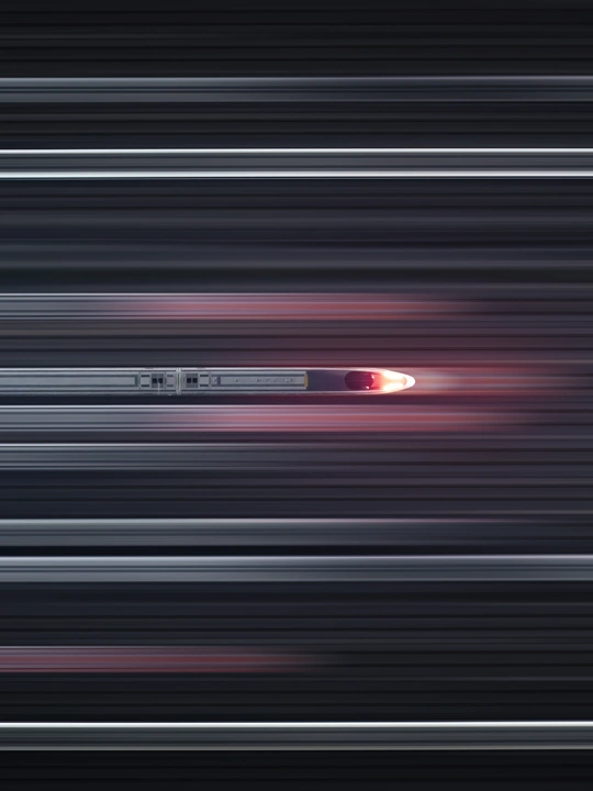 凌晨的动车所,返回检修的动车正缓缓驶入轨道。动车的灯光照亮轨道,竖直的轨道给人整齐划一的感觉,经过电脑后期,试图营造出了一种列车一马当先,风驰电掣过站的感觉。
