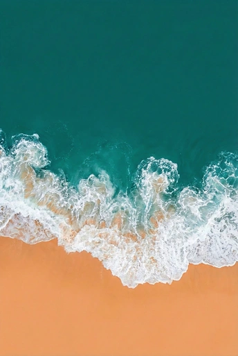 蔚蓝深邃的海水轻抚金黄沙滩,翻腾的白色浪花勾勒出自然的曲线,每一次潮汐都谱写着地球的呼吸。从空中俯瞰,色彩纯粹而治愈,是海洋与陆地最温柔的对话。
