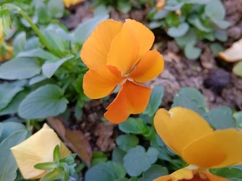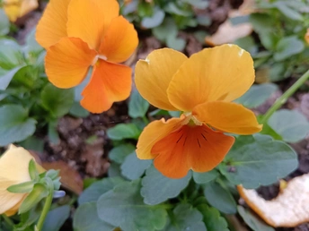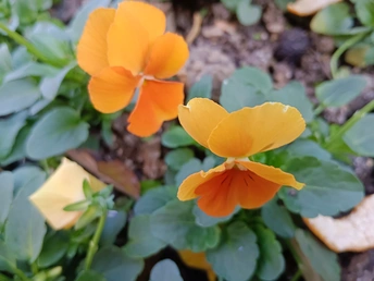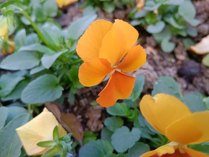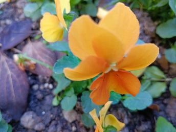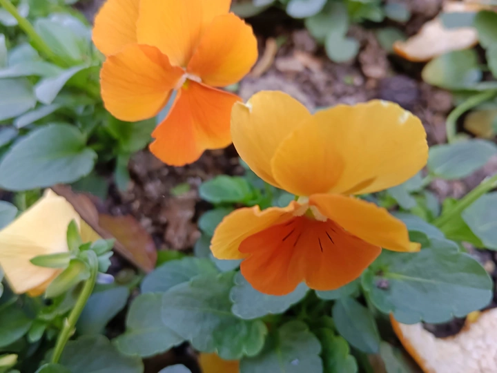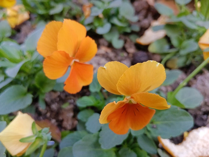 秋丛里的橙焰双生 秋的杂影裹着凉雾,这两朵三色堇却像揉碎的暖阳落进了荒丛——一朵是炽烈的橙,瓣边浸着浅金,活脱脱秋野里跳脱的焰;一朵是柔润的黄,芯处晕着橙纹,像把暖光织成了软的笺。 它们把细茎作枝桠,挨在残叶间私语:风过处,瓣尖轻颤如星屑抖落,连那点浅褐的痕,都是秋亲手绣的韵脚。哪有什么刻意的规整?炽橙的烈、柔黄的软,是秋丛里撞出的小欢喜,把凉雾都焐成了暖的诗。 这哪是两朵花?是秋野里并肩的信使,把季节的暖藏进瓣间——原来最生动的伴,从不是复刻的模样,是一烈一柔的相衬,是荒寒里挨着的暖。
