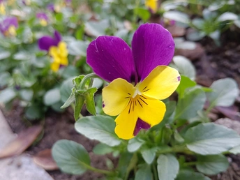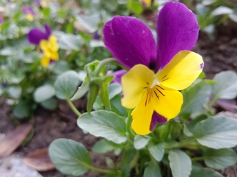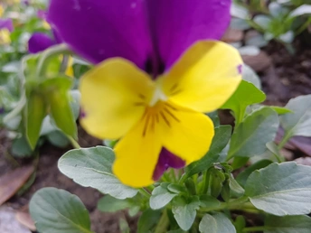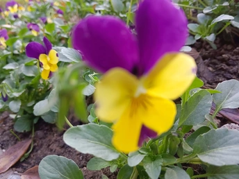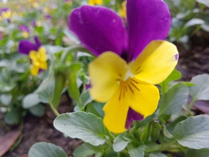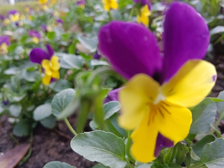 紫黄瓣间的秋丛私语 秋的杂影裹着薄凉,这朵三色堇却像从时光里偷来的撞色笺——上瓣是浸了暮色的紫,沉得像揉碎的星夜;下瓣是晒透晴光的黄,亮得像抖落的金箔,紫与黄在瓣尖缠出浅褐的痕,活脱脱秋野里藏着的小欢喜。 细茎斜撑着,把这抹艳从残叶间抬出来:瓣上的星点细尘是笺边的批注,风过的轻颤是读信的声息,连旁侧蜷着的花苞,都成了未拆封的暖。它哪是在开?是把秋的凉,都缝进了紫黄交织的软里。 远处模糊的紫黄影,是这朵花的伴——它们不追盛时的灼目,只以撞色的艳,在荒丛写着短章:生命最生动的模样,从不是单一的匀净,是紫的沉与黄的亮相衬,是凉雾里挨着的暖。 风裹着叶的软掠过瓣尖,才懂这撞色的真意:所谓圆满,从不是无瑕的精致,是与不完美共生的妥帖,是秋丛里藏着的、最朴素也最热烈的诗。